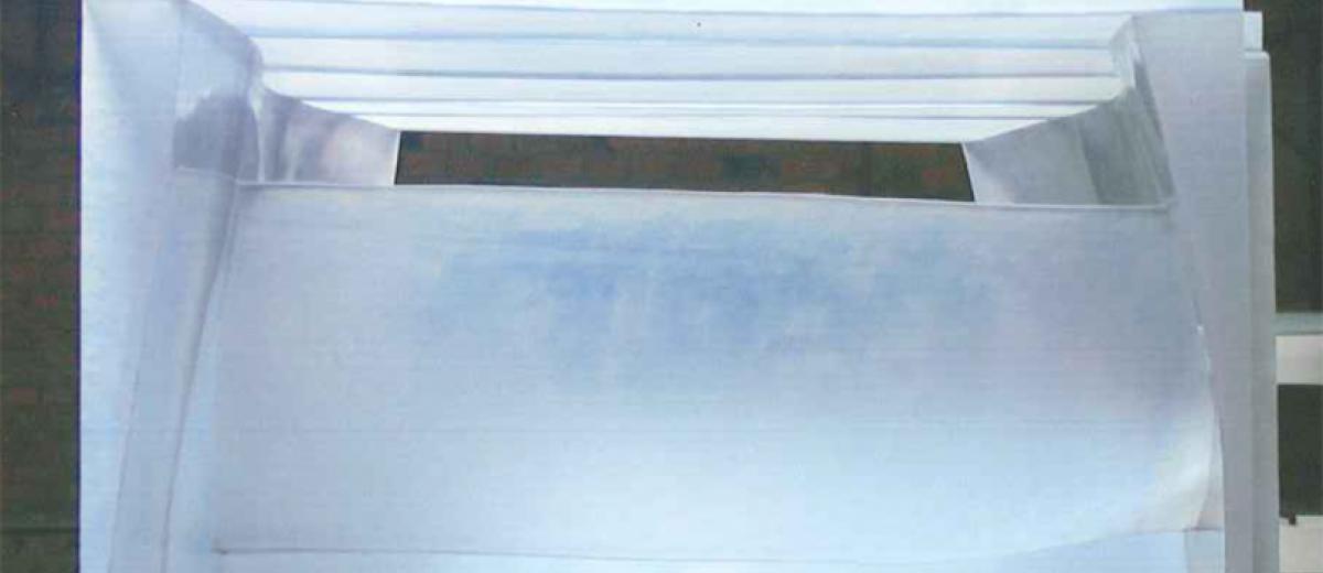 The envelope of this corridor is made of laminated polyester resin, which enables a very fine skin to be made, paradoxically opening your eyes to a great depth in the thickness of the surface.