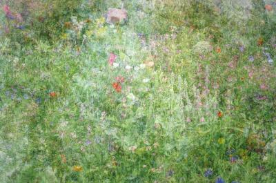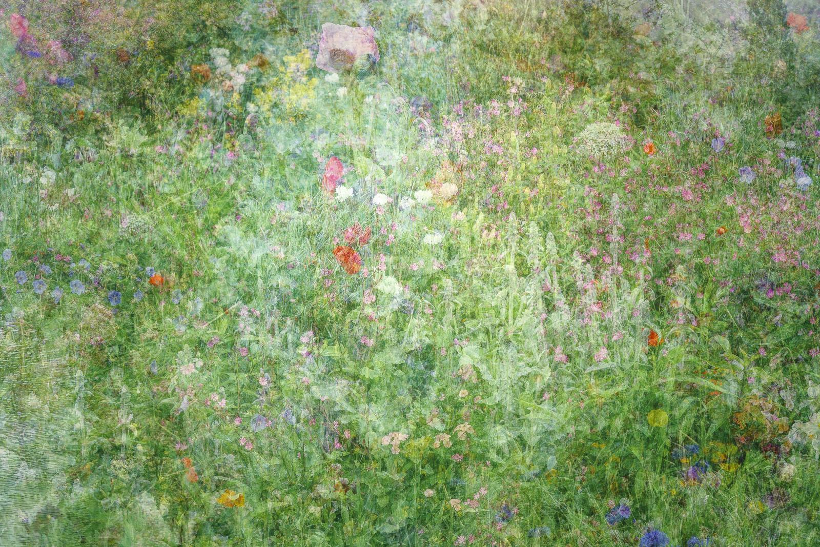 A strange light blooms in places and fades away. Leaves and petals quiver to their own rhythm, like the memory of a field of tall grass trampled underfoot. From the shadows, like fragile slivers of flowers, emerges a bracing sense of confusion. What the image reveals is not taken from reality, but reconstructed from memory. It depicts not so much a meadow but more a state of being, a material vibration captured at the border of the invisible. Is it a field of flowers or an inner vision? It is up to you to choose. This is how the experience of a Kim Boske work begins, not through the representation of a world, but by evoking a mysterious connection between what was perceived and what now vibrates.
