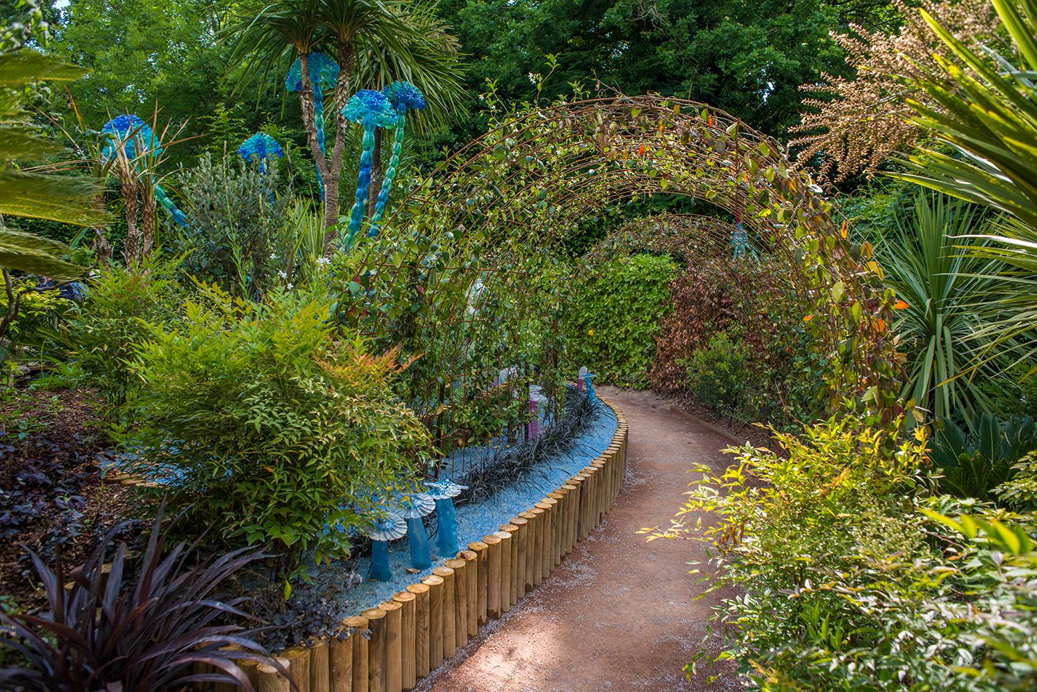 Unfamiliar natural plants flirt with disproportionately sized sculptures fashioned out of upcycled plastic bottles. These multicoloured animal- or plant-based sculptures adorn the festive garden. Similar to a catchy tune, a succession of atmospheres unfurls like the downstrokes and upstrokes of a calligraphy enhanced with illuminations. What if we were daydreaming?