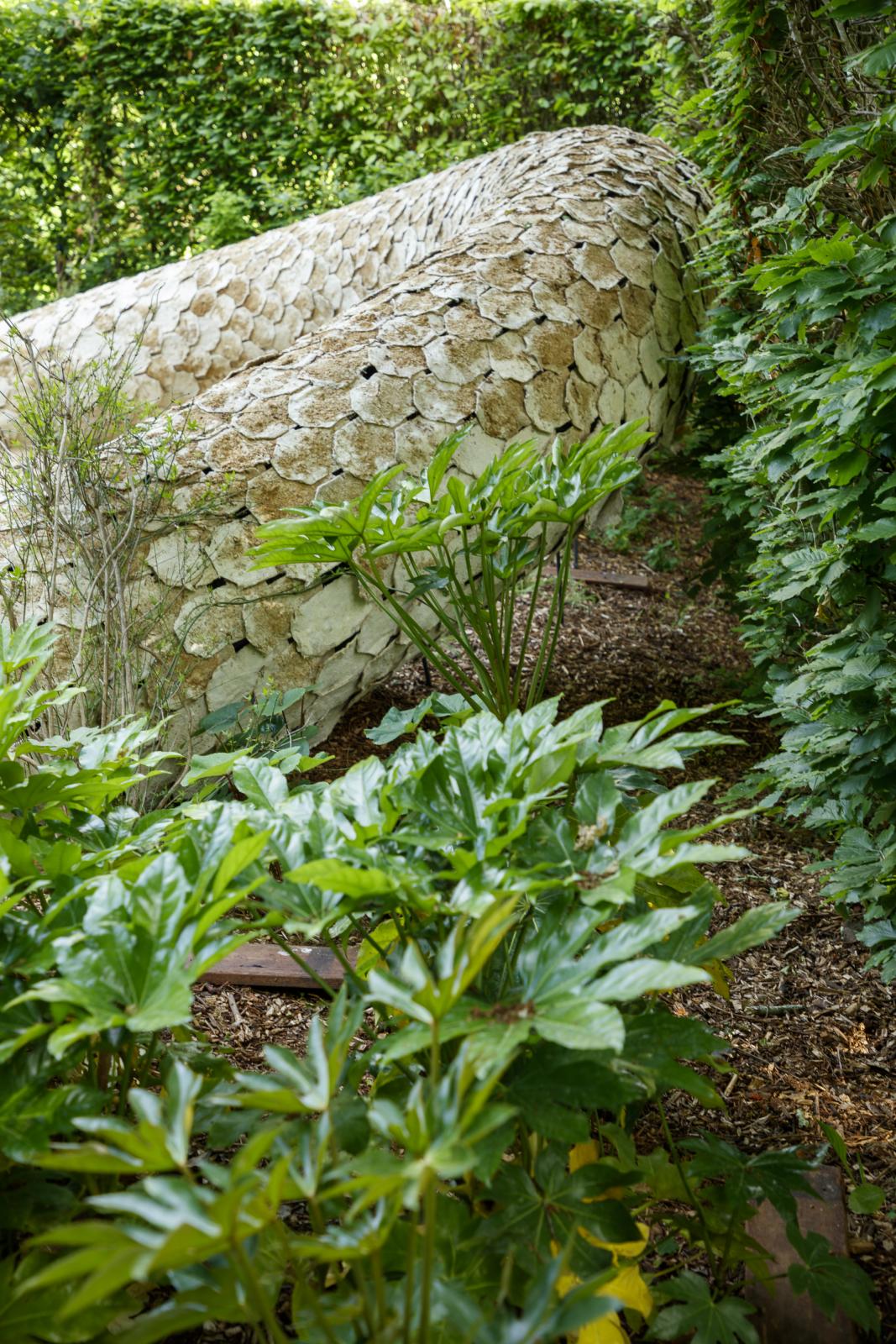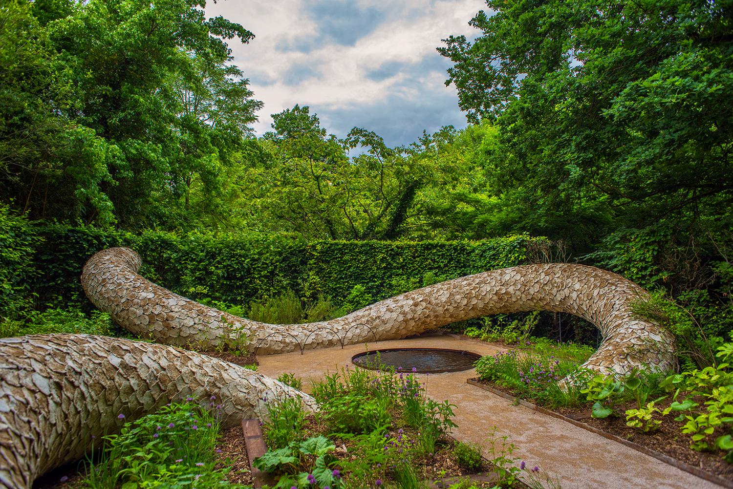 Between precision and leniency, passion and turmoil, this garden, like their history, is one of contrasts. Here, a narrow passage, the snake’s breath seems to rustle the hedge. There, a relaxing stroll, the coils soothe the mind. Then, a pool, where landscape and sky are reflected in harmony. Suddenly, the snake looms up, only to fall back into the curves of the hedge. And so it is that, with each visit, the story continues to be written, carried by the wisdom of the plants and the breath of an immortal legend.