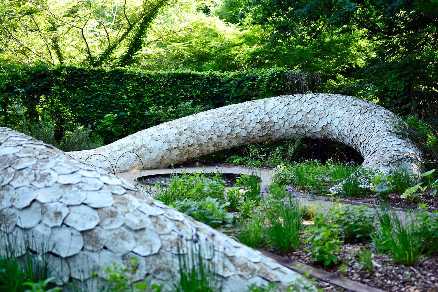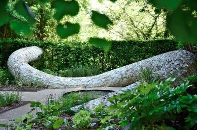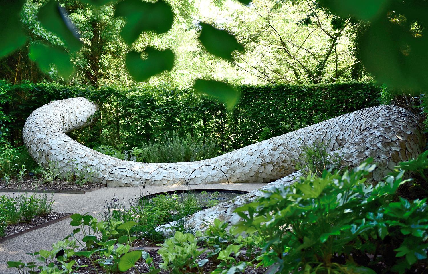 A legend from ancient China is still stirring up turmoil: that of Bai Suzhen, the White Snake. This ancient spirit turned itself into a divinely beautiful woman. On the shores of West Lake, the woman-spirit meets Xu Xian, a young herbalist with a dreamy look in his eye. In the mists of fate, their souls united, forging a fragile love, ephemeral yet eternal. And so a landscape was born, reflecting their story. Xu Xian is represented in the precision of an orthogonal pattern, a meticulously arranged medicinal garden, where Eastern and Western traditions mingle. Bai Suzhen, meanwhile, rises forth here and there. Her serpentine coils appear and disappear among the pathways. Her living scales evolve in step with the seasons, transforming just like her indomitable spirit.