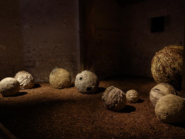 La Grange aux Abeilles accueille, quant à elle, les sculptures de Janine Thüngen-Reichenbach. Formes végétales, fibreuses, stratifiées, elles sont cocons, graines, corps en devenir, toujours liées aux arbres et à leurs écorces.